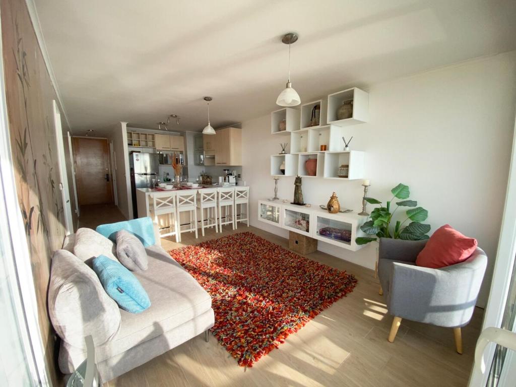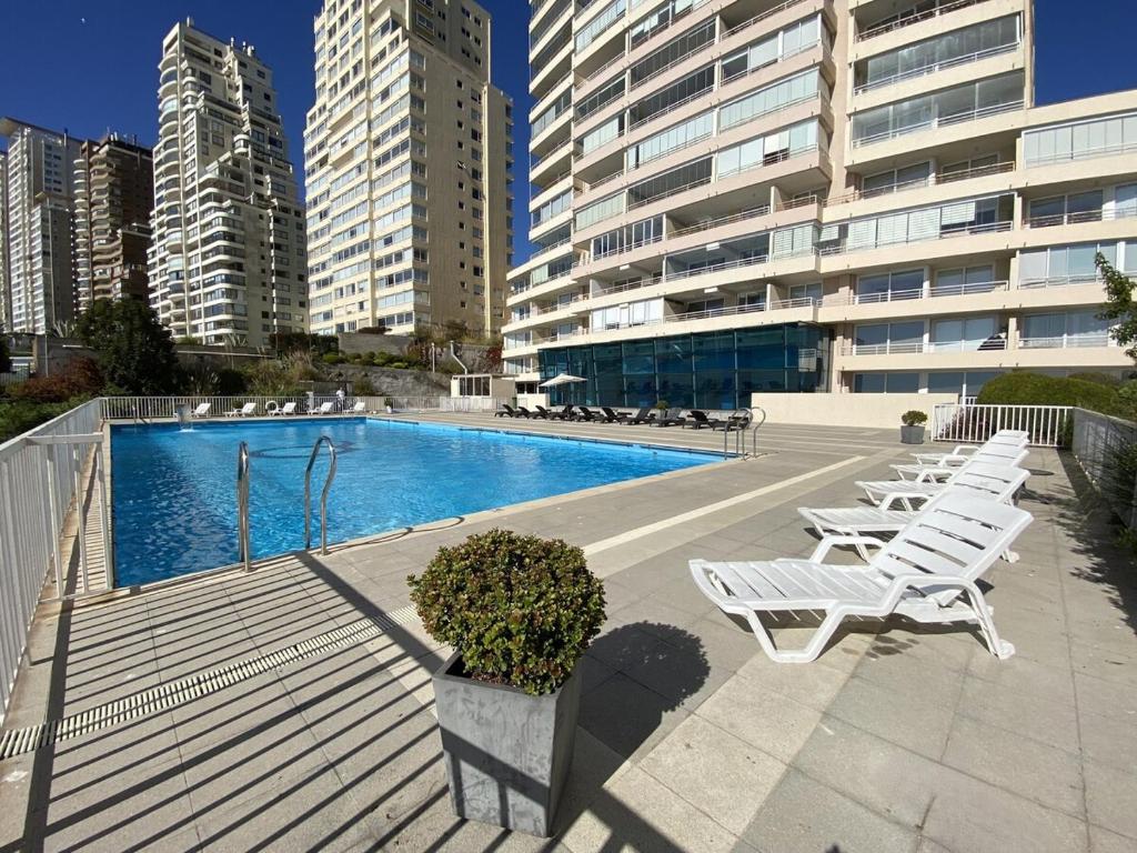 Departamento en Reñaca con vista al mar, piscinas y parrilla