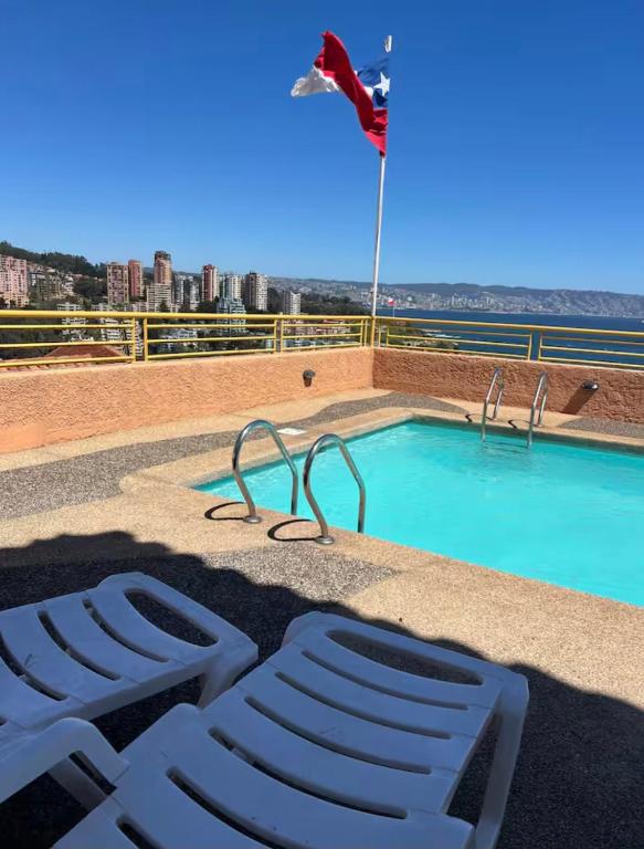 Los huéspedes tienen acceso a una piscina en Departamento Reñaca.